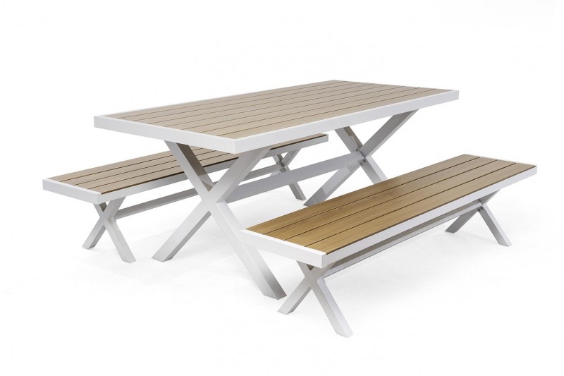 وصف: طاولة طعام خارجية من الألمنيوم مع كرسيين ( بنش )