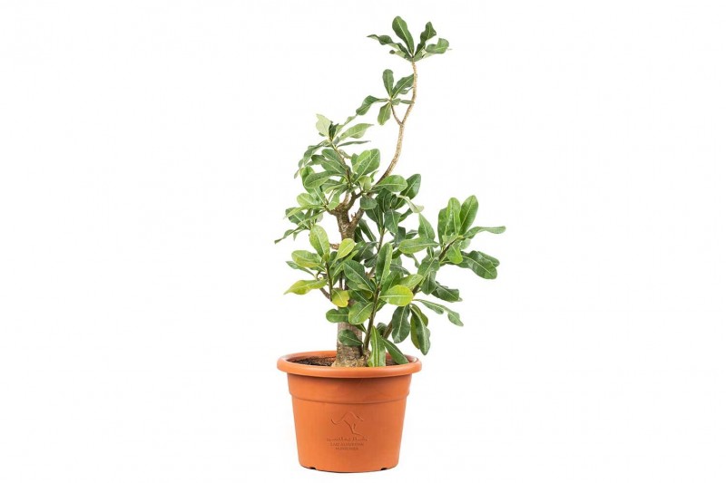 نبتة العدنة (Adenium obesum) ذات ساق متخم يختزن كميةً من المياه، لونها يميل للأبيض المغبر، وأوراقها قليلة ذات شكل كمثري، وتزهر في فصل الربيع أزهاراً جميلةً أنبوبية الشكل ذات لون برتقالي من الخارج يليه لون أبيض من الداخل وفي المركز لون أصفر يضفي على الأزهار منظراً أخاذاً، يصل ارتفاعها إلى أربعة أمتار في سفوح تهامة في المملكة العربية السعودية، لكن طولها يتقزم كلما ارتفعنا حتى أننا نجدها وكأنها نبات زاحف لا يتجاوز ارتفاعها نصف متر أو أقل. تتكاثر بالبذور