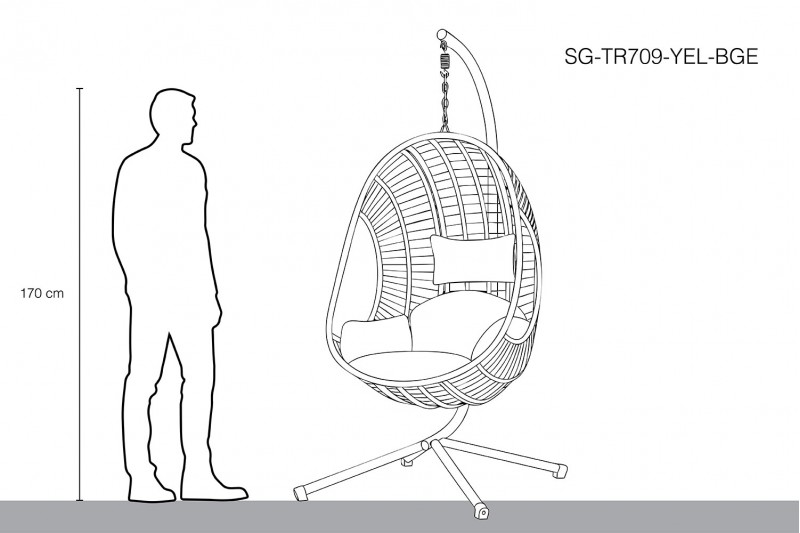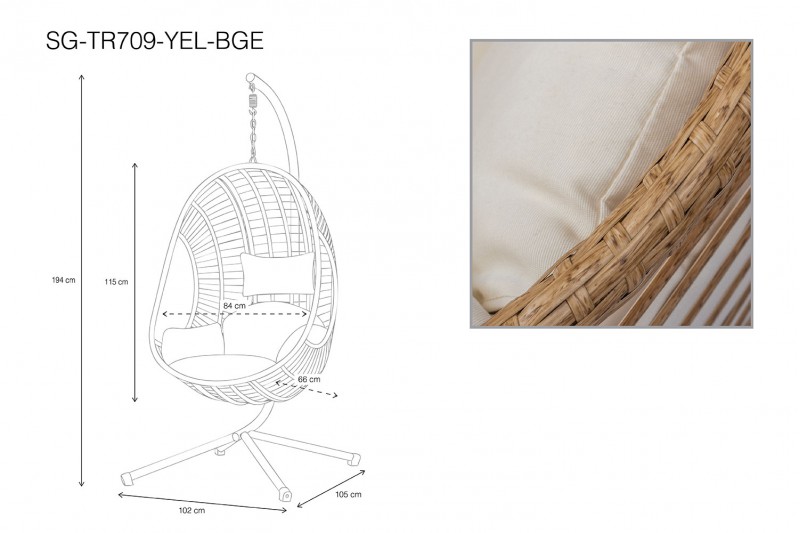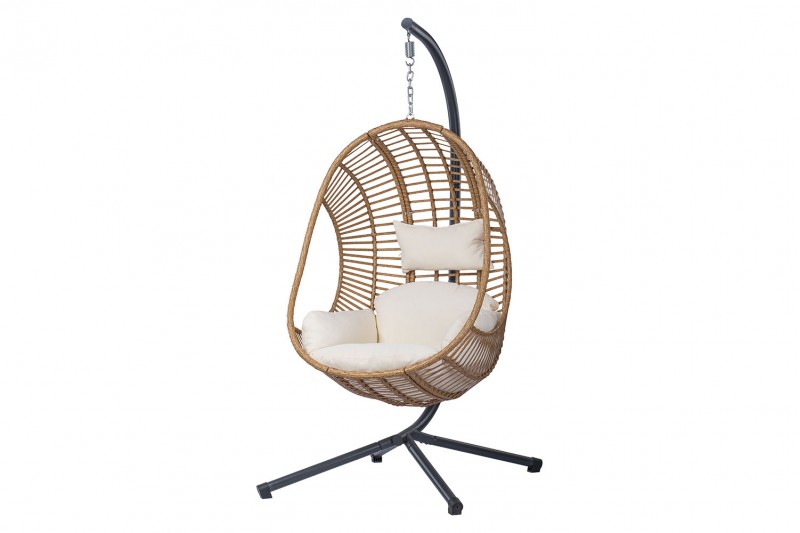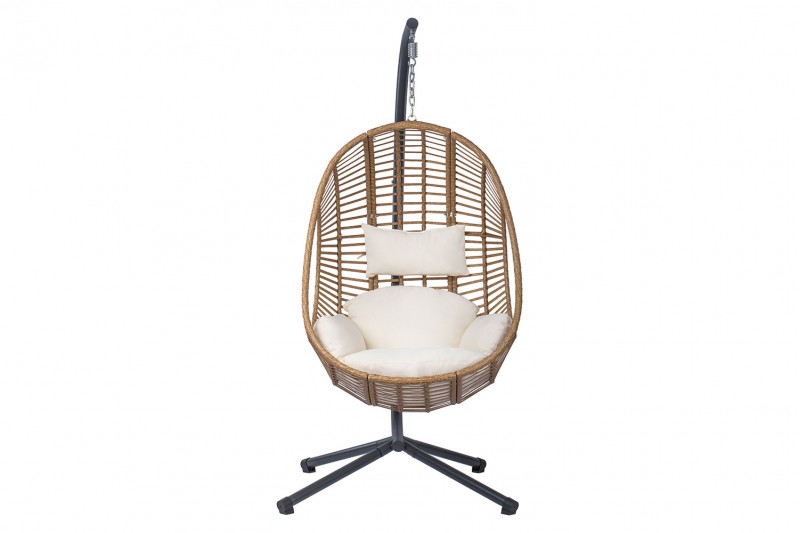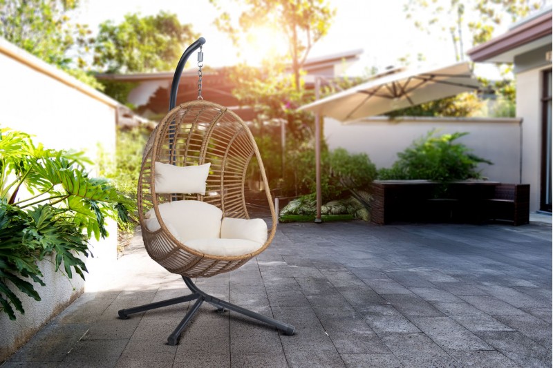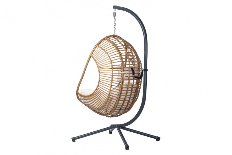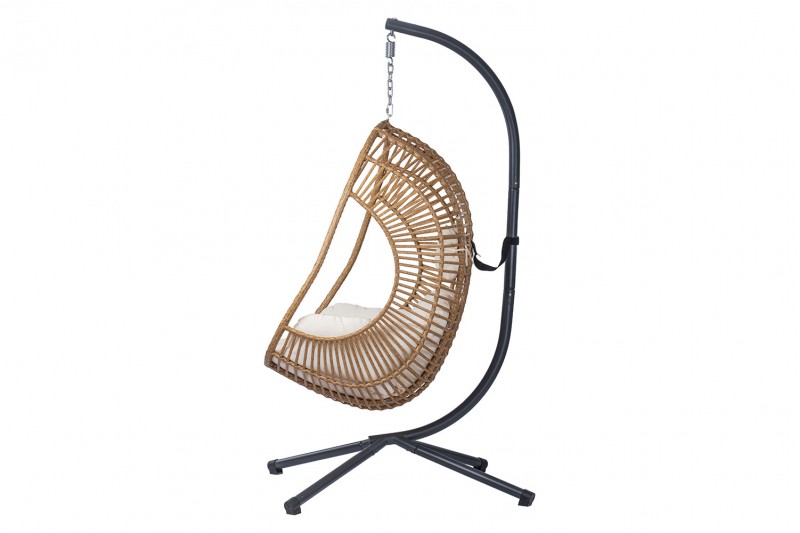 تصميم: كرسي معلق راتان بإطار فولاذي.
