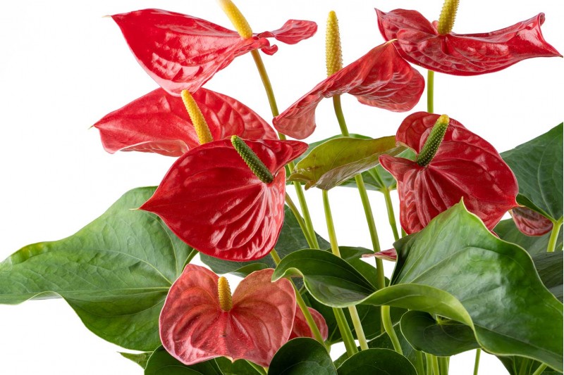 انتوريوم أو القماش المزيت ومن اسمائه ايضاً زهرة البشروس أو زهرة الغلام، وتتميز النبتة بأزهارها ذات الألوان الأبيض أو القرنفلي أو الأحمر الساطع،