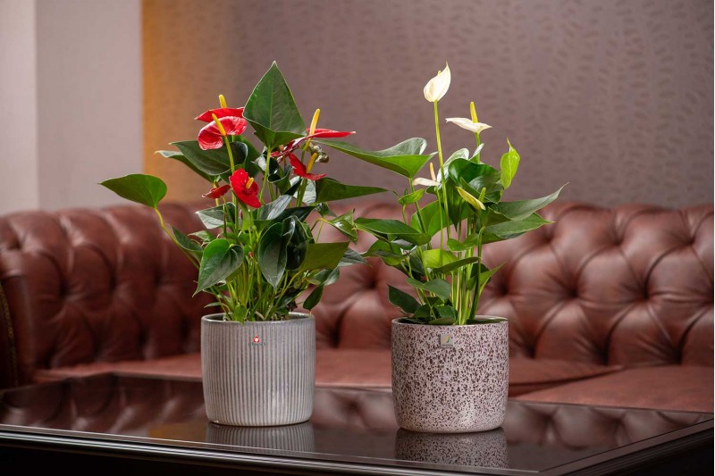 انتوريوم أو القماش المزيت ومن اسمائه ايضاً زهرة البشروس أو زهرة الغلام، وتتميز النبتة بأزهارها ذات الألوان الأبيض أو القرنفلي أو الأحمر الساطع،