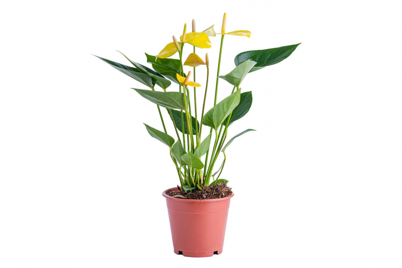 سقي الأنثوريوم جيدًا ، لكن اتركه يجف قليلاً بين الريات ،لا تفرط في سقي نبات الأنثوريوم لأنه قد يتسبب في تلف الجذور واصفرار الأوراق.