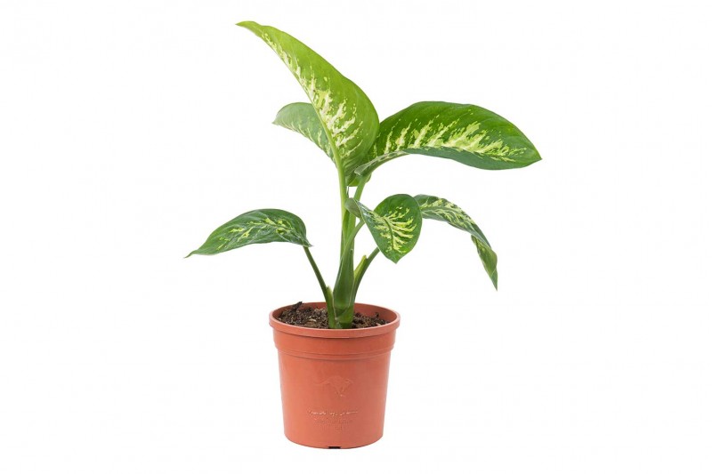 نبات الديفنباخيا يوجد منه عدة أنواع، وتعتبر الديفنباخيا امونيا من أقواها وأكثرها تحملاً، تزرع لجمال أوراقها التي تتميز بحجمها الكبير الذي قد يتجاوز 20 سم طولاً و 12 سم عرضاً، ولونها أخضر عشبي مخططة بخطوط صفراء تتخللها نقاط وخطوط خضر، قد يصل ارتفاعها إلى متر واحد وقد تزيد.والنوع المسمى نبتة الحماة يسمى أيضاً بالقصب المجنون! لأن العصارة المرة المفرزة من أوراقها ضارة لذلك فمضغ أوراقها له تأثير سام يؤدي لتورم اللسان وفقد النطق لتأثيره الشديد على الحبال الصوتية لذلك ينبغي إبعادها عن متناول الأطفال. ويتكاثر بالعقل، وكذلك بالخلفات أو الفسائل التي تنمو من براعم على طول الساق الرئيسي