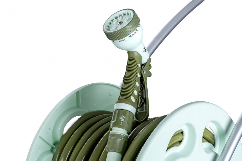 الرش والري: مرفقة بـ مسدس رش (Nozzle) متعدد الأنماط، يُستخدم للتحكم في نوع وشدة تدفق المياه للري أو التنظيف.
