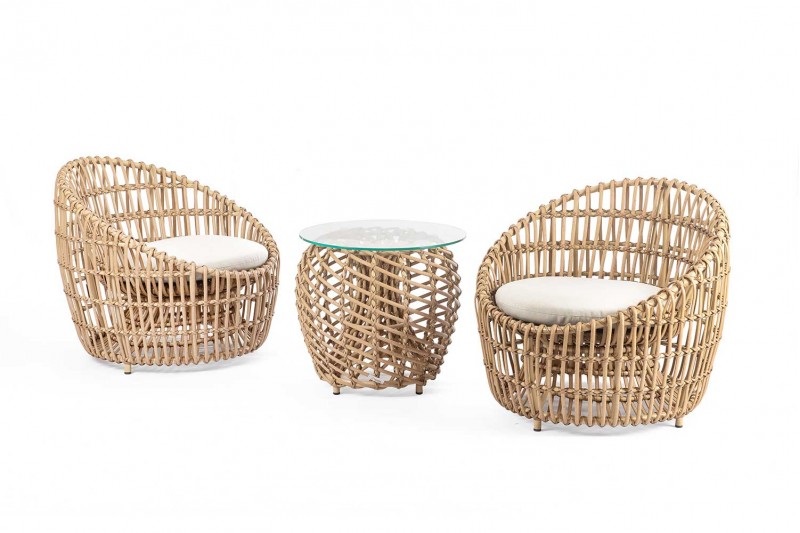جلسة خارجية لشخصين مصنوعه من الخوص (البامبو) المقاوم لتقلبات الطقس