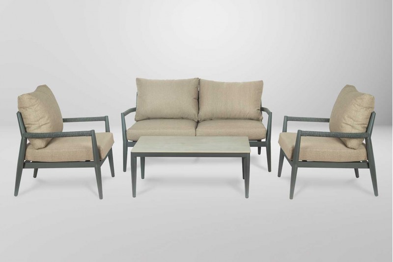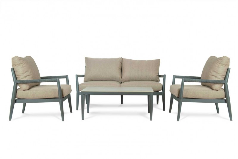 هذا الطقم يضم 4 قطع كراسي أنيقة وعملية، مثالية للمساحات الخارجية أو الداخلية. يتكون الطقم من كرسي مزدوج لشخصين وكرسيين فرديين، بالإضافة إلى طاولة وسط.