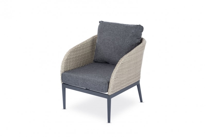 مزود بوسائد رمادية داكنة مريحة للجلوس والاسترخاء.
