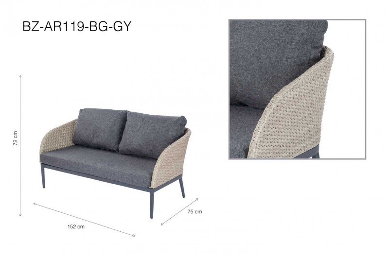 مقاس الكنبة المزدوجة: العرض 152 سم × الطول 75 سم × الارتفاع 72 سم.