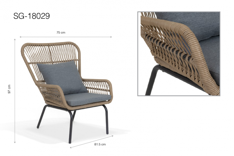 تتضمن وسائد للمقعد والظهر سميكة ومريحة بلون رمادي داكن، مما يوفر راحة إضافية.