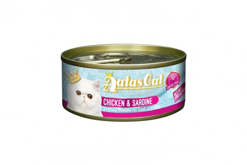 دجاج كريمي مع السردين في مرق للقطط الحجم: 80 جرام مزيج مثالي من الدجاج خالٍ من الدسم مع السردين البري المطبوخ في مرق لذيذ