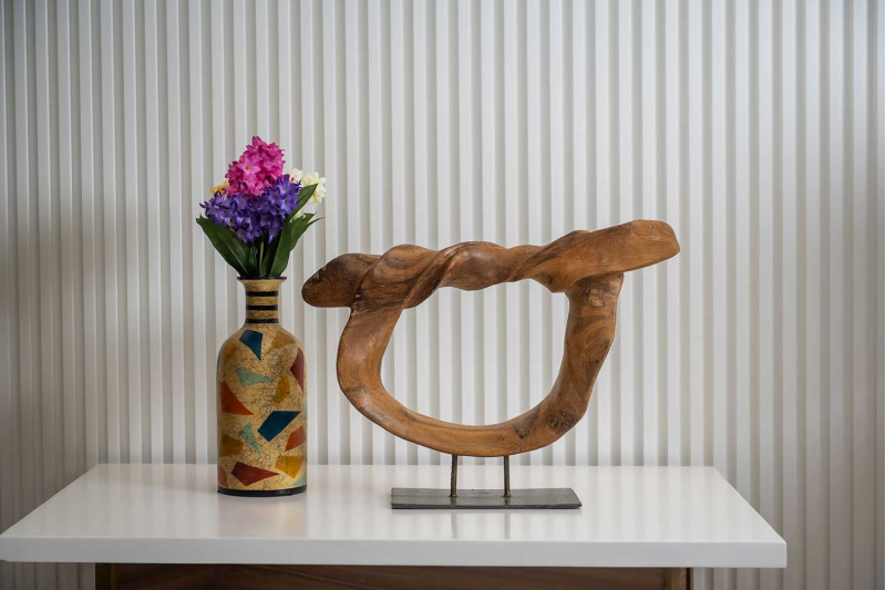 .ديكور مصمم بشكل جميل من الخشب الطبيعي مع قاعدة باللون الأسود
