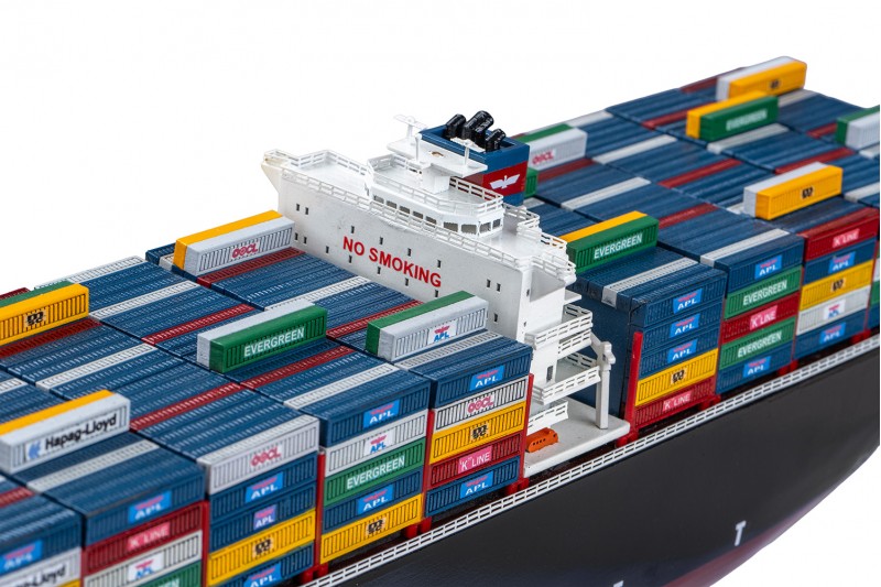 هذا النموذج المصغر هو ماكيت لسفينة شحن، يتميز بكونه قطعة مثالية لهواة جمع المجسمات البحرية