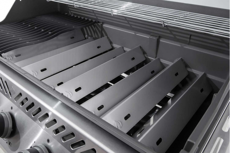 لوحات ذات مستوى مزدوج من الفولاذ الذي لا يصدأ يوفر توزيعًا متساويًا للحرارة ويحمي الشعلات التي في الأسفل.