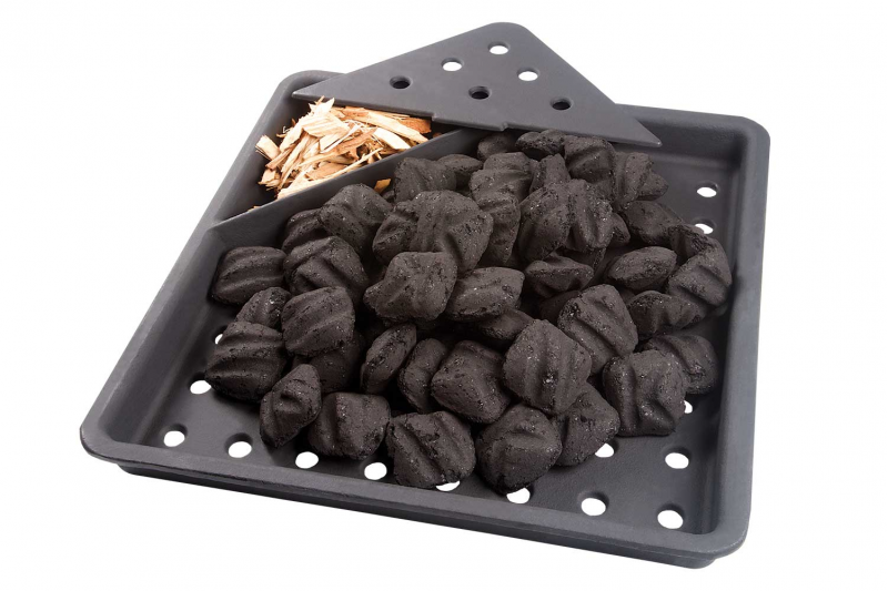 التدخين: استخدم رقائق الخشب أو القطع في الصينية لإضفاء نكهة دخانية على طعامك. يسمح تصميم الصينية بالحرارة غير المباشرة، وهي مثالية للتدخين البطيء.