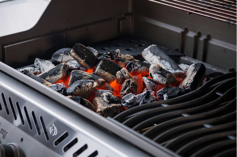 سهل الاستخدام: ما عليك سوى إزالة شبكات الطهي، ووضع الصينية على الشعلات، وإضافة الفحم أو رقائق الخشب، واستبدال الشبكات.