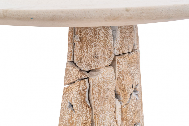 قاعدة الطاولة:خشب الساج الريفي الطبيعي، مما يمنحها مظهرًا مميزًا.