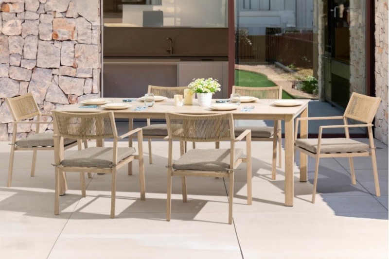 تضيف لمسات الحبال الطبيعية على الكراسي لمسة جمالية راقية وملمسًا مميزًا للتصميم.