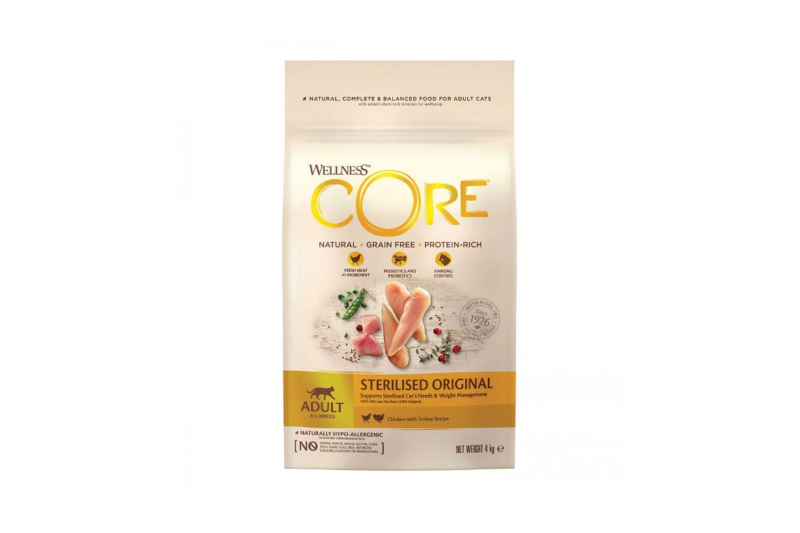 طعام ويلنس كور الخالي من الحبوب هو طعام جاف للقطط من الدجاج ولحم الديك الرومي، مغذي، طبيعي وغني بالبروتين. تساعد هذه الوصفة الغنية بالمغذيات على دعم الصحة المثلى والوزن وطول العمر للقطط.