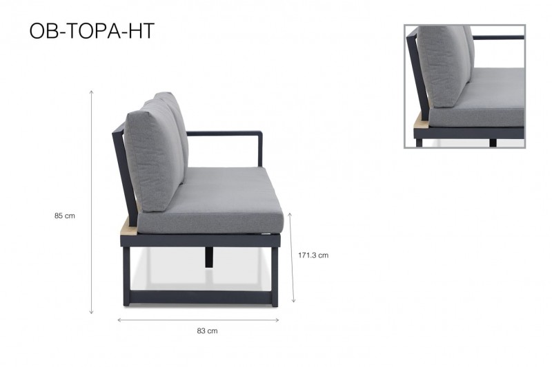 صوفا يمين : العرض: 83 × الطول: 171.3 × الارتفاع: 85 سم