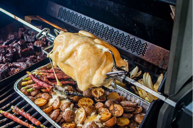 محرك قوي: يتحمل ما يصل إلى 26 رطلاً من الطعام، مما يسمح لك بطهي مشويات كبيرة أو عناصر أصغر متعددة.