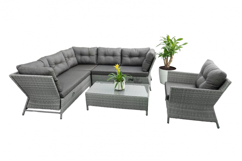 الوصف: جلسة خارجية زاوية من الراتان والألمنيوم مع طاولة وسط .