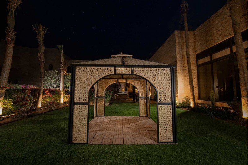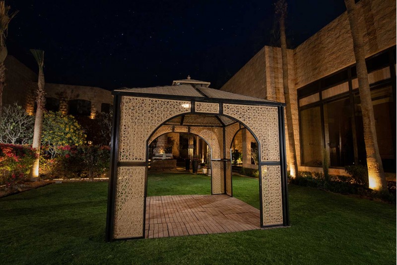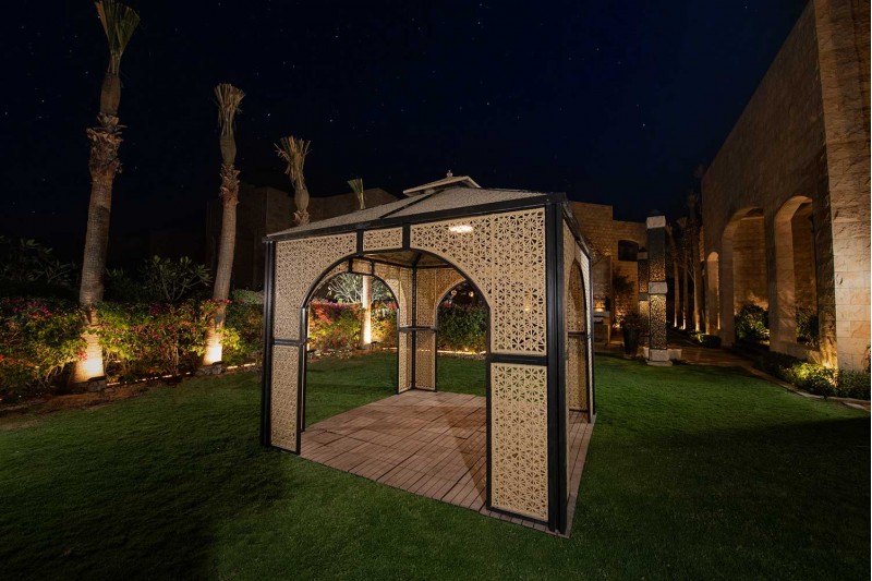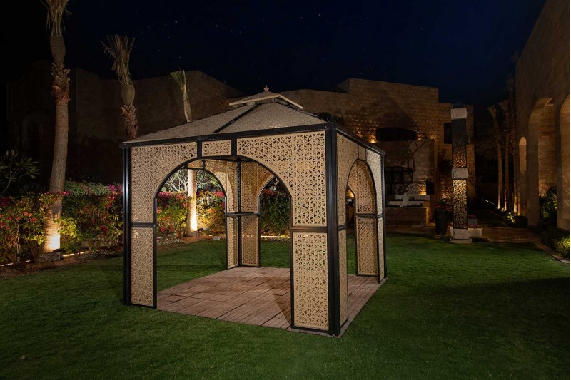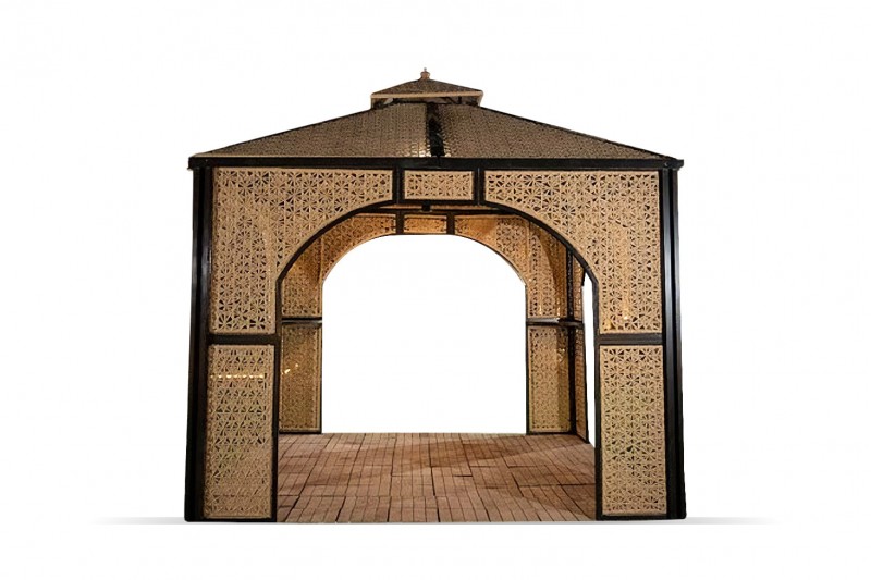 المادة المصنوعة للمظلة: الالمنيوم والراتان الصناعي وأرضية خشبية.