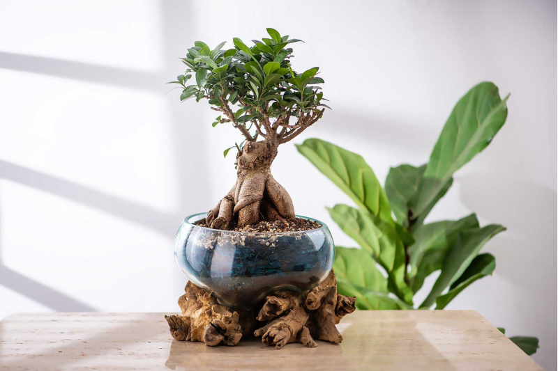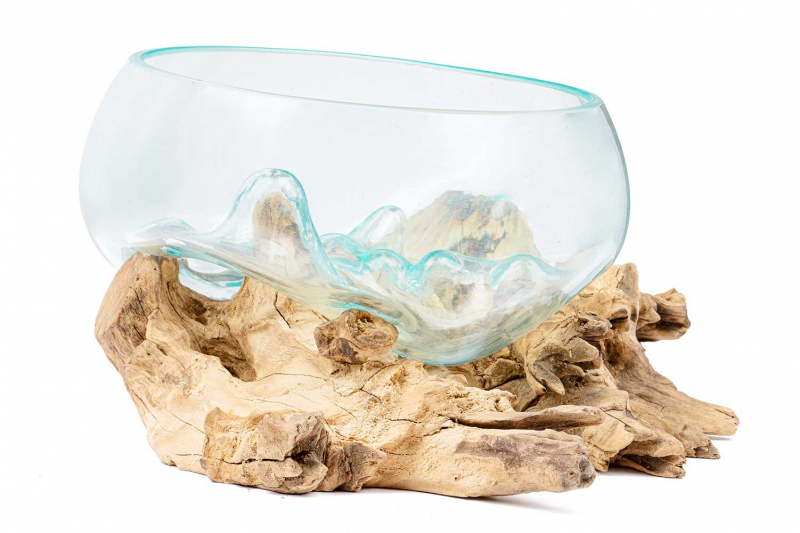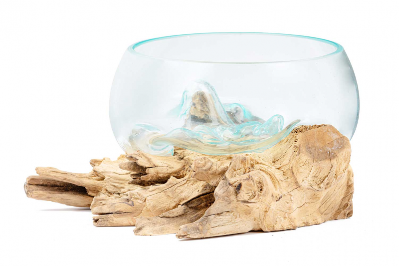 الوصف: فازة من الزجاج المشغول يدويا بقاعدة من الخشب الطبيعي
