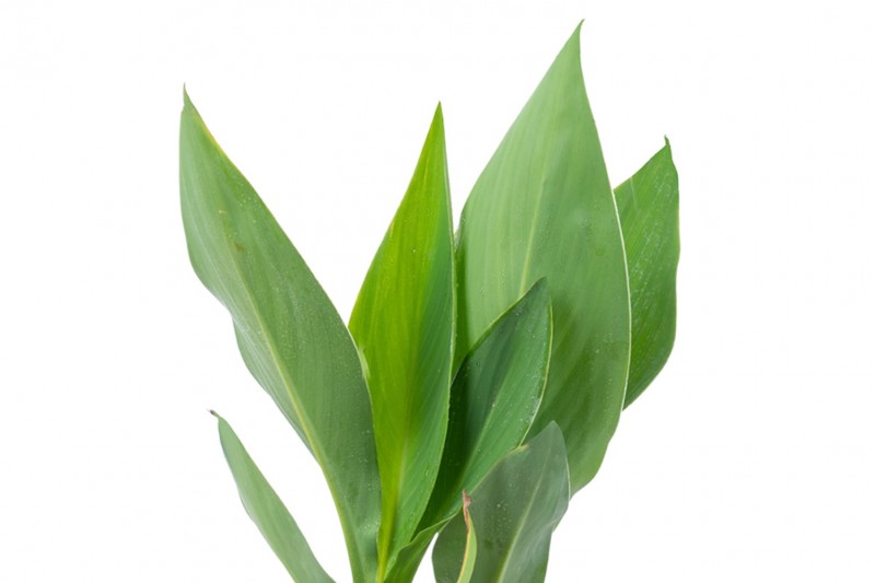 .والأوراق جذابة كبيرة وواسعة بيضاوية الشكل لها عروق على ساق ملساء، والجذور متدرنة ريزومية