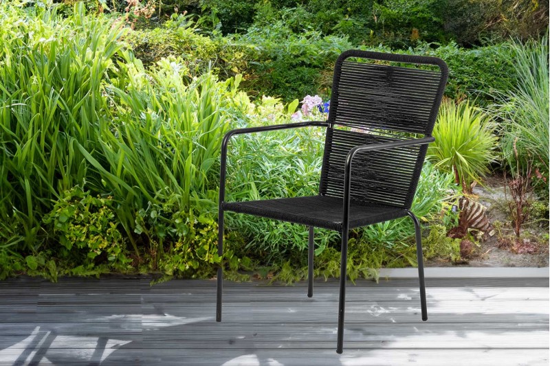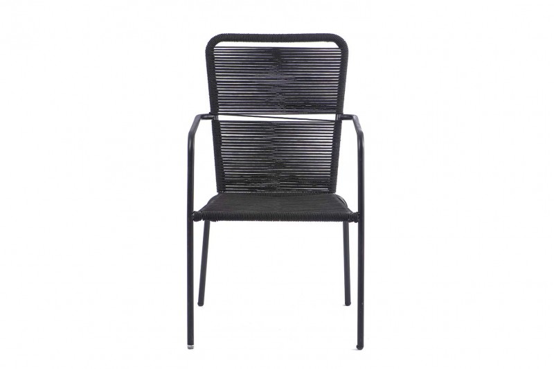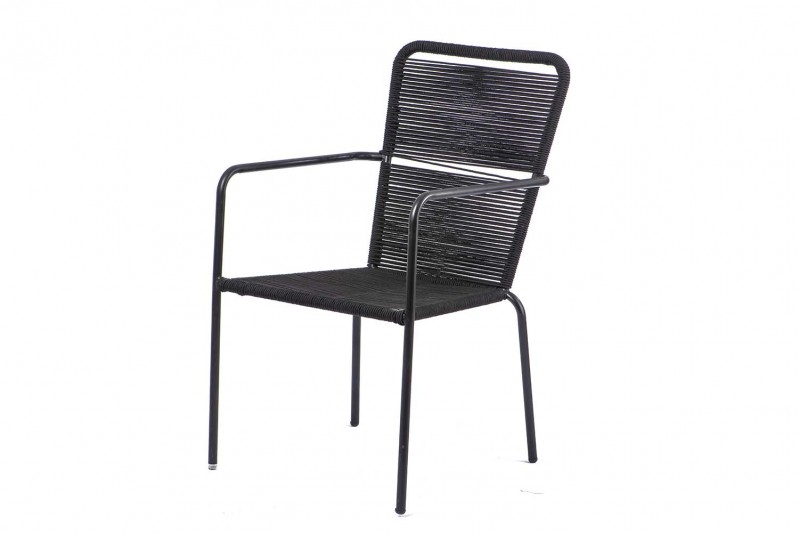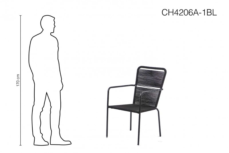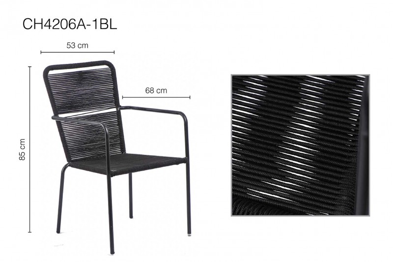 وصف: كرسي طعام مصنوع من المعدن ورباط الحبل بلون أسود