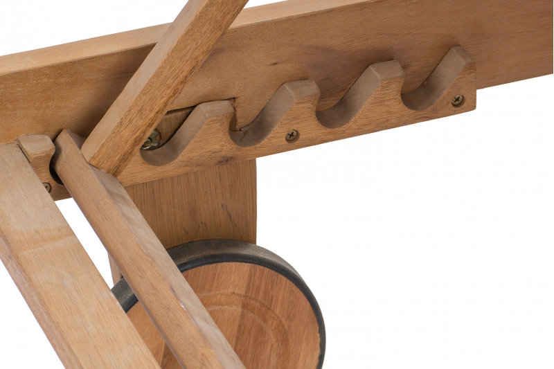 التصميم: يتميز بتصميم خشبي شرائحي، مع مسند ظهر قابل للتعديل ومساند للذراعين.