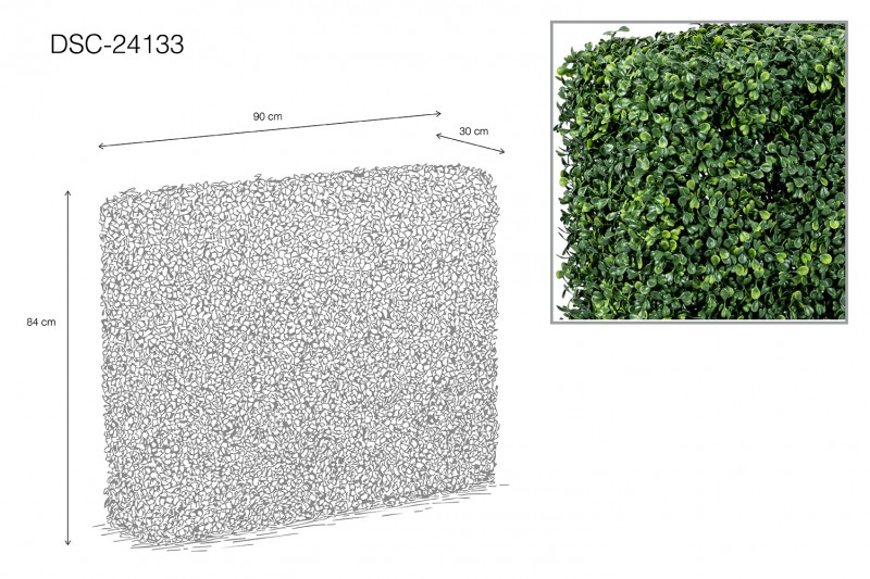التصميم: هو لوح سياج كثيف ومربع الشكل، مصمم ليبدو مثل أوراق شجر البوكسوود الحقيقية.