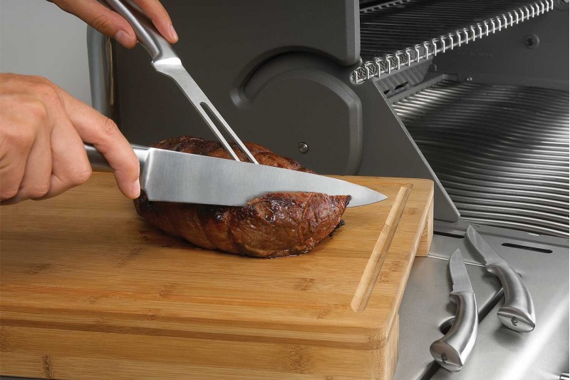 شفرة تقطيع مقاس 13.5 بوصة: شفرة حادة من الفولاذ المقاوم للصدأ مثالية لتقطيع اللحوم المشوية والدواجن وغيرها من قطع اللحوم الكبيرة.