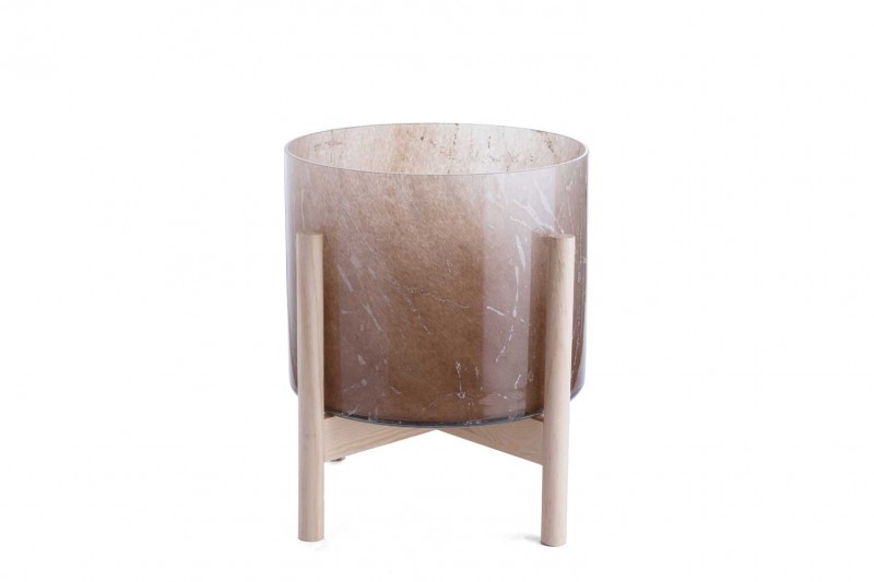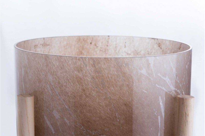 المادة المصنوعة للمركن : زجاج مع حامل خشبي