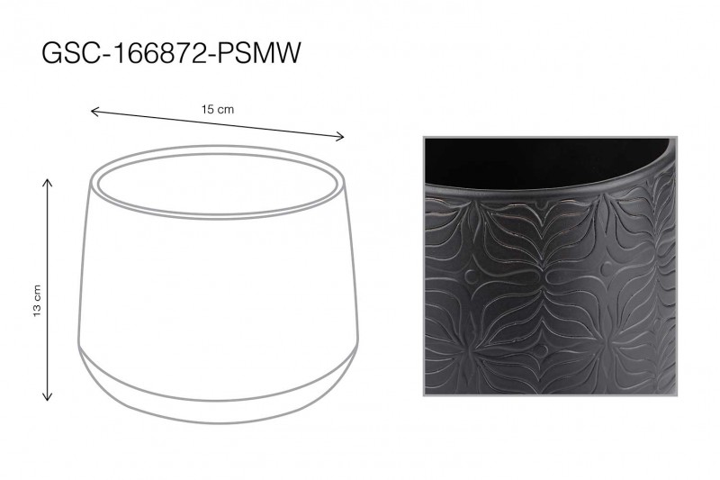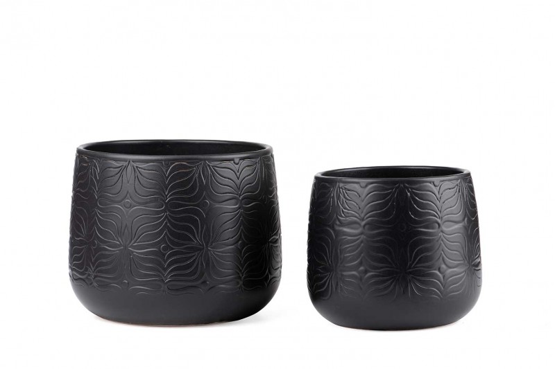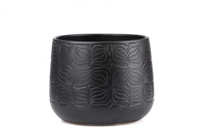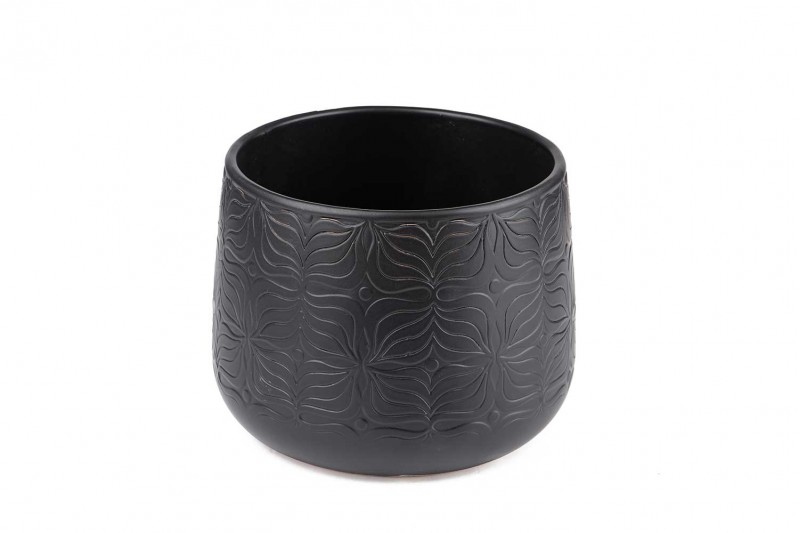 .وصف: مركن سيراميك لون أسود منقوش