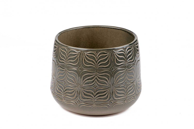 .وصف: مركن سيراميك لون رمادي منقوش