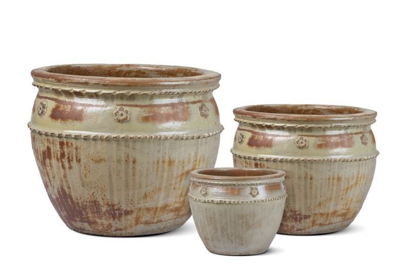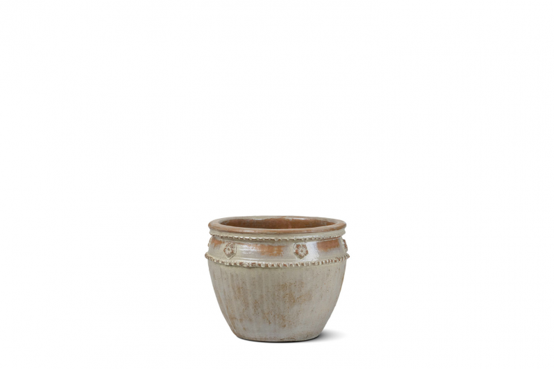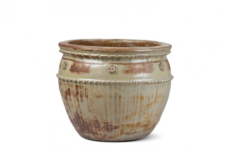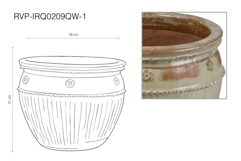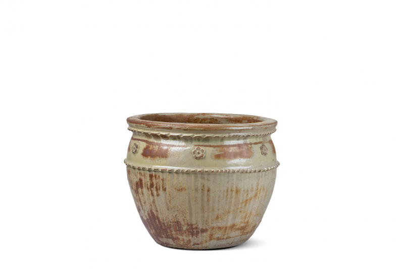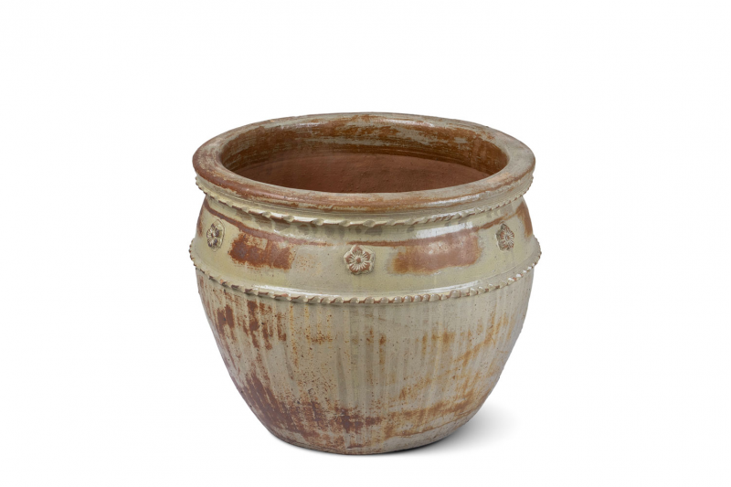 يوجد شريطين بارزين حول الجزء العلوي من الوعاء، يبدوان وكأنهما حبلان مجدولان.