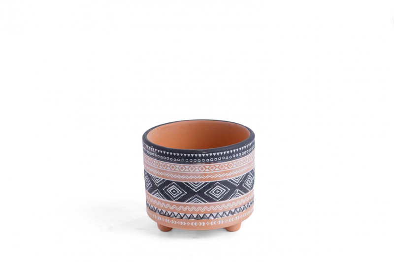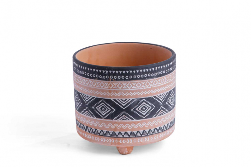 حوض من مادة الطين مزخرف صناعة يدوية لون بني وأسود