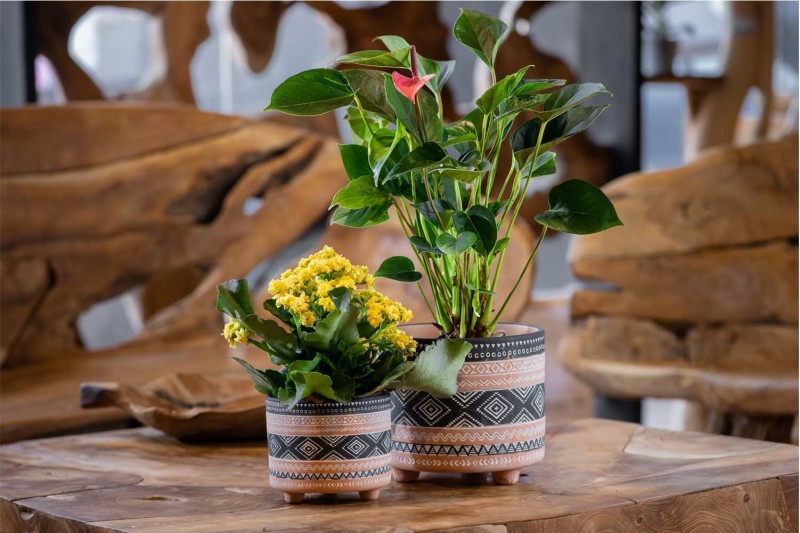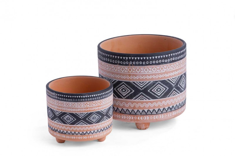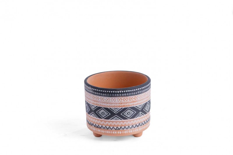 حوض من مادة الطين مزخرف صناعة يدوية لون بني وأسود