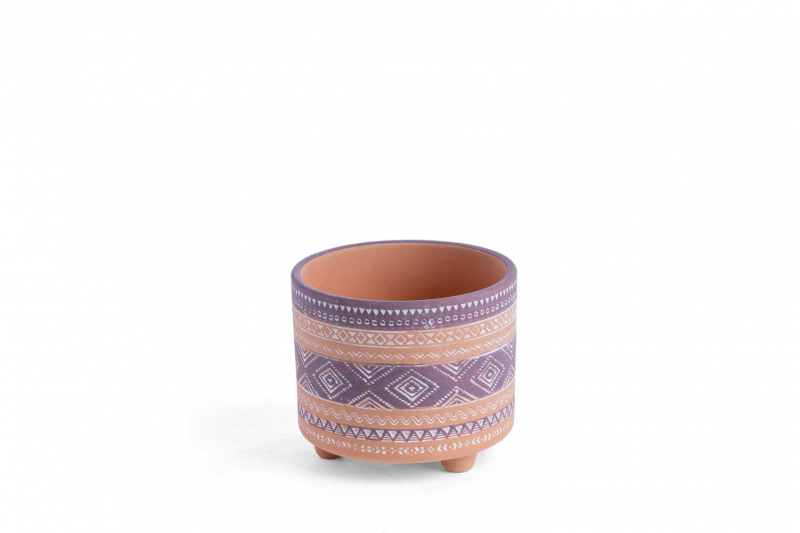 حوض من مادة الطين مزخرف صناعة يدوية لون بني وبنفسجي
