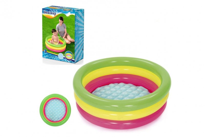 مُصممٌ بشكل دائري بحجم مناسب ملون ، من خامات عالية الجودة لضمان تجربة سباحة آمنة ومريحة للغاية