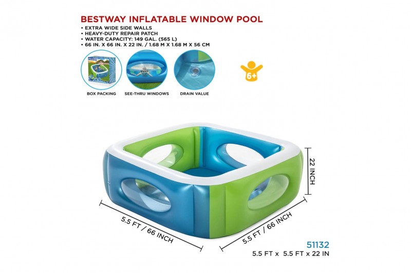 مُصممٌ بشكل مربع بحجم مناسب ولون أخضر و أزرق، من خامات عالية الجودة لضمان تجربة سباحة آمنة ومريحة للغاية