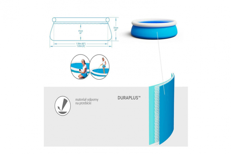 مُصممٌ بشكل دائري بحجم مناسب ولون أزرق افتح ، من خامات عالية الجودة لضمان تجربة سباحة آمنة ومريحة للغاية