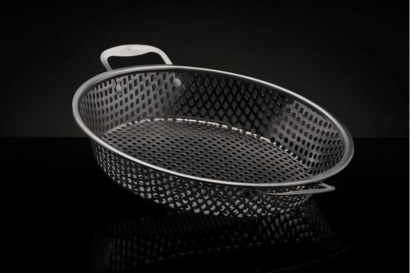 جدران عالية: تحتوي على أطعمة أصغر حجمًا، مما يمنعها من السقوط عبر شبكات الشواء.