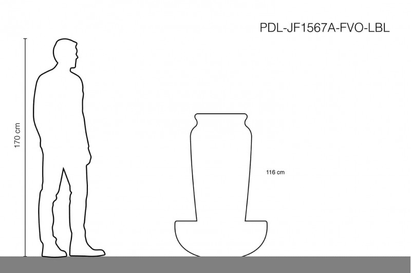 المقاس : الإرتفاع 116 × عرض القاعدة 60 سم .