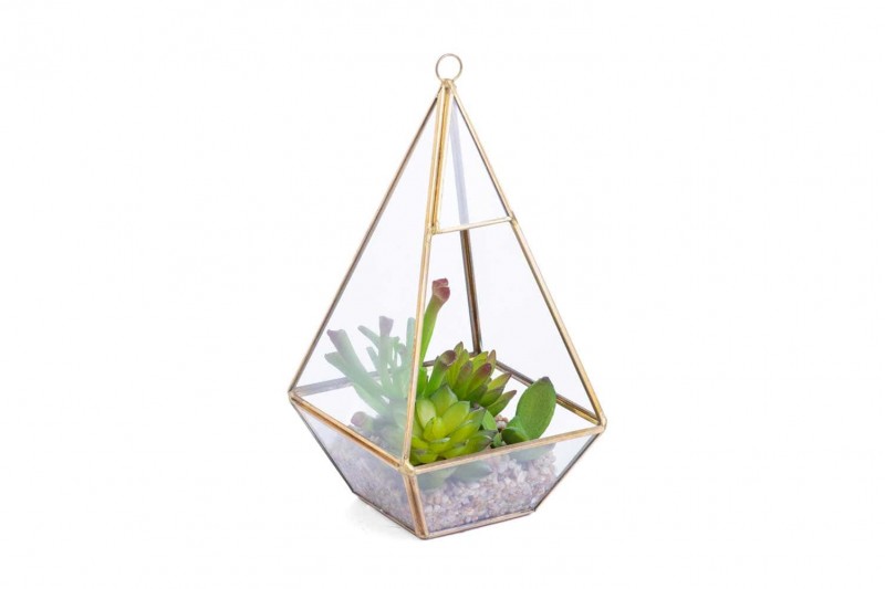 صباريات اصطناعية مع حوض زجاجي بشكل هرمي