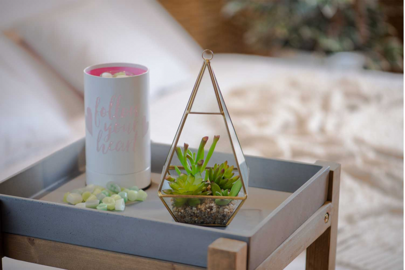 صباريات اصطناعية مع حوض زجاجي بشكل هرمي