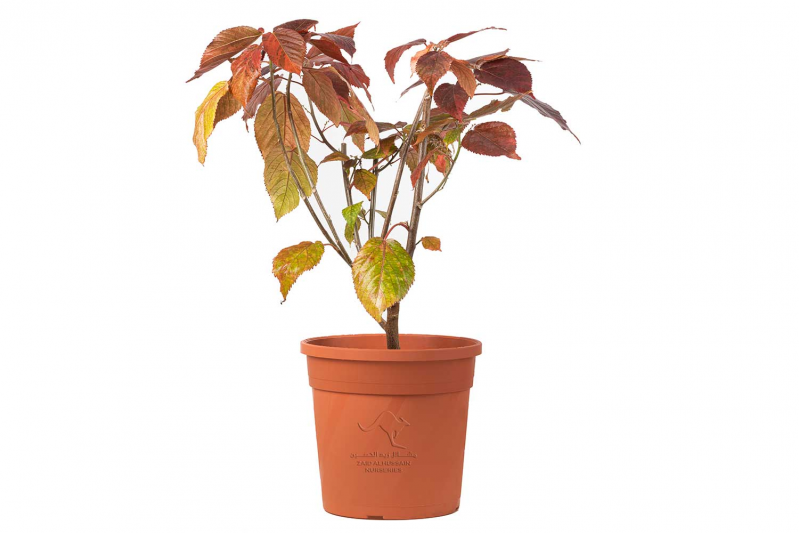 وتظهر كل ورقة بعدة ألوان من درجات اللون الأحمر كما أن هناك أصناف منه بألوان مختلفة. ويتم تكاثره عن طريق العقل الساقية