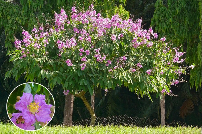 تسمى ايضا شجرة ( تمر حنة او الياسمين الهندي أو وردة القهوة, أرجواني هندي ) هي شجيرة مستديمة الخضرة غزيرة التفريع, أزهارها الصيفية المذهلة تسحر العين و تجذب النحل و الحشرات و الطيور المختلفة التي تتغدي من رحيقها. تستخدم شجرة تمر حنه في تزيين واجهات المنازل او الحدائق العامة وتستعمل كمظلات او اسيجة للمقاهي والنوادي ولها رائحة عطرية قوية.