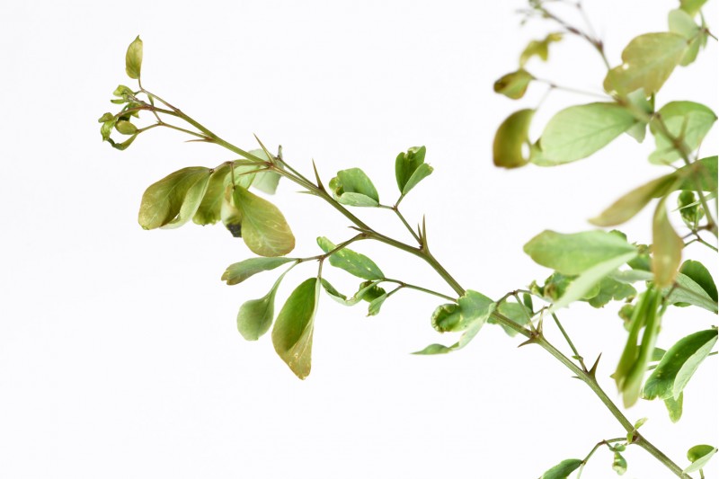 الأشواك: توجد أشواك حادة ومزدوجة في قواعد الأوراق.