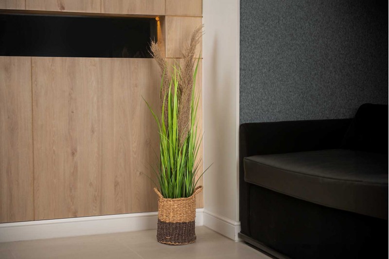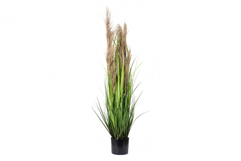 اعشاب البامباس الاصطناعية مع زهور جميلة باللون البيج ، تتميز باعشابها الخضراء شبه الطبيعي ، و تُعد غير سامة و امنه على الأطفال والحيوانات الاليفة